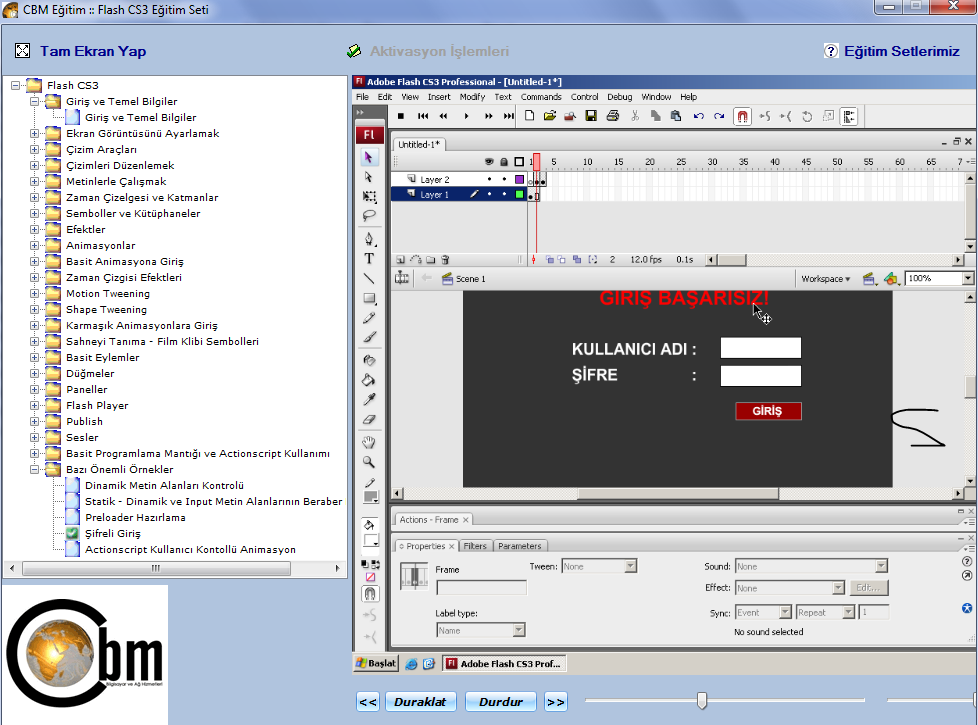 6 - Sonra istər masaüstündən istəsəniz c: \Proqram Files\CBM kompüter\CBM Egitim - Flash CS3 buradan proqramı açın egər windows 7 ya da vista istifadə edirsinizsə