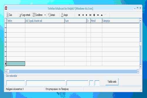 Telefon məlumat kitabçalarının yaradılması üçün nəzərdə tutulmuşdur. Çeşidləmənin və axtarışın parametrlərinin qurmasının imkanı var.Proqranm WwW.Windows-Az.Com saytının məhsuludur.