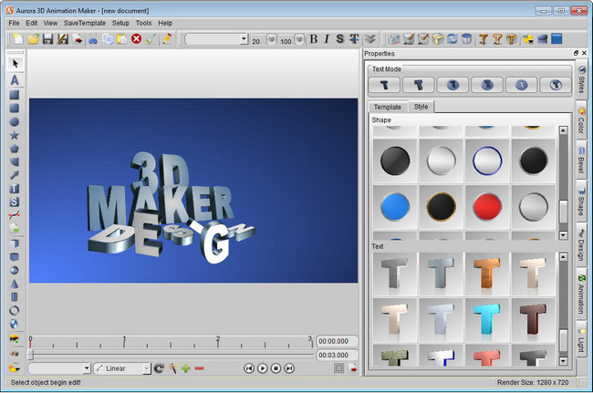 Aurora 3D Animation Maker, 3 ölçülü animasiyalı yazı, logo və bannerlar meydana gətirmənizi təmin edən professional bir proqramdır.Sahib olduğu vasitə, efekt və örtmələr ilə sizdə asanca 3D dizaynlar edə bilər, Flash(*SWF), GIF ya da şəkil olaraq qeyd edə bilərsiniz.