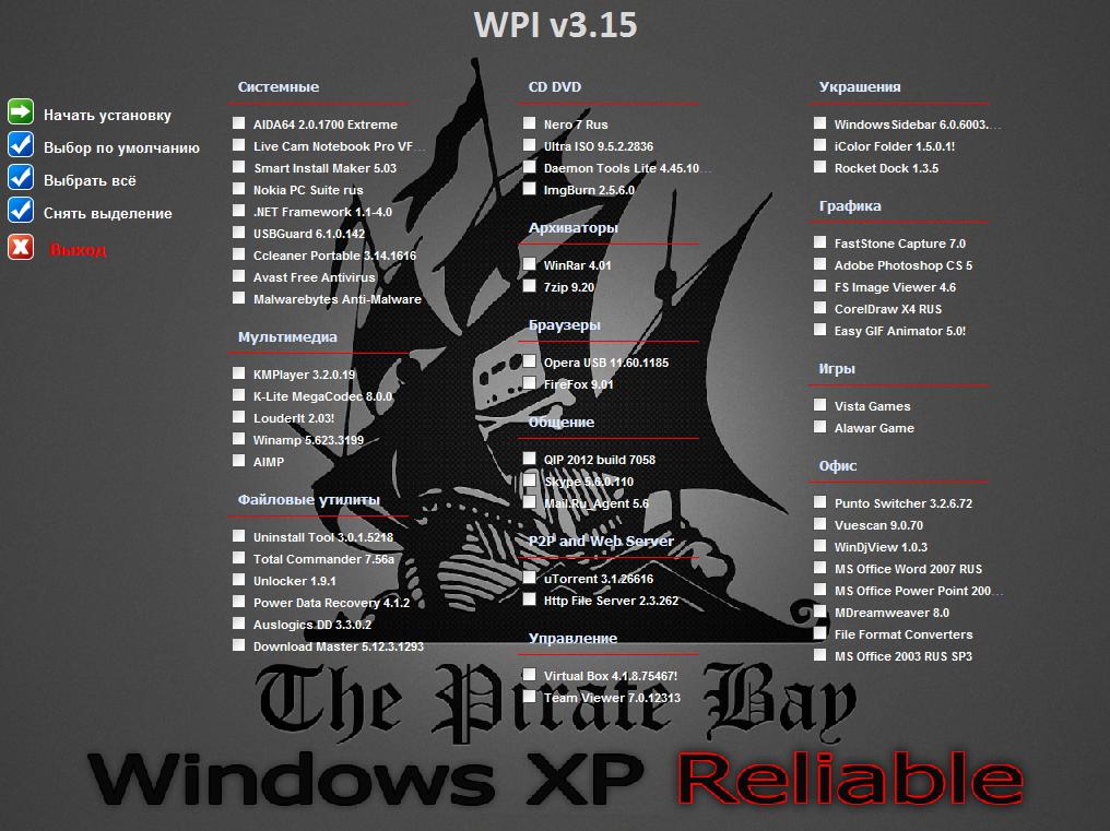 - DirectX 9.0c Redistributable (iyun 2010) - UxTheme - imzalanmamışların tətbiqi üçün Patch fayldır onlara - Tcpip.100 - 5000-ə qədər TCP/IP c 10 birləşilmələrinin eyni zamanda olan natamam (half-open-i) limitinin Artımıdır - Addon Required Dll's - bəzi proqramların işə salınması üçün lazım olan .dll-ın Əlavə fayllarıdır.- Windows Media Player 11 v.11.0.5721.5260 - Internet Explorer v8.0.6001.18702 - J2SE Runtime Environment - Adobe Flash - Akelpad (mətn redaktoru) əvəzetmə standart bloknotdur.