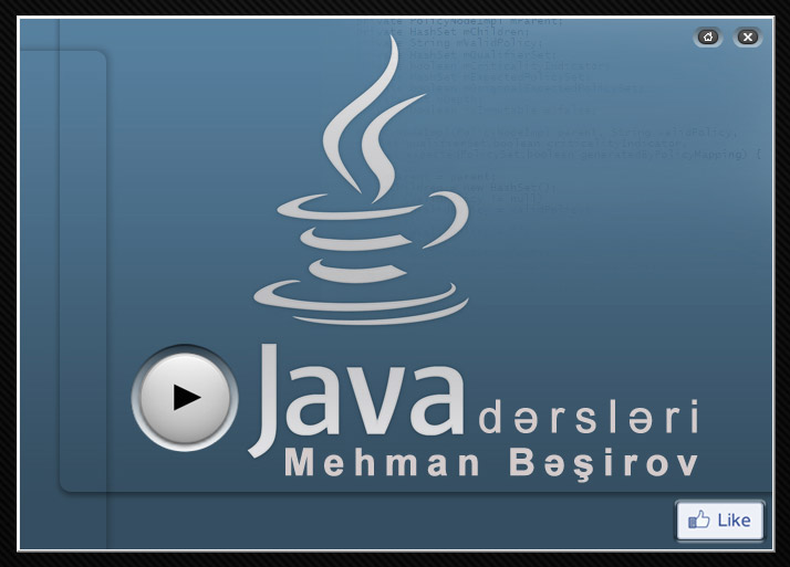 JAVA proqramlaşdırma dilinə yeni başlayanlar üçün Azərbaycan dilində Mehman Bəşirov tərəfindən hazırlanmış video drəslik.Paketə 20 ədəd dərslik daxildir.19-u video 1-i isə PDF izahatdan ibarətdir.