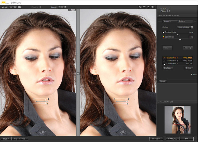 Nik Software Dfine ehtiva etdiyi patanet U-point texnologiyası ilə şəkillərinizin istənilən bölgəsində ya da hamısında əyrilik düzəltmənizə köməkçi olan bir photoshop əlavəsidir..