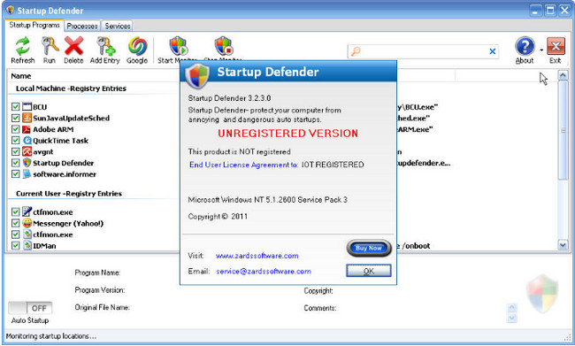 Zards Software Startup Defender Windows sistem çubuğuna yerləşər və avtomatik olaraq çalışan proqramları tapar. Əgər sizin icazə vermədiyiniz bir proqram işə çalışsa onu dayandırar və sizi anında xəbərdar edər. Buna əlavə olaraq hansı proqramların açılışda avtomatik olaraq çalışacağına da qərar verə bilər, canınızı sıxan proqramların işlədilməməsini təmin edə bilərsiniz...