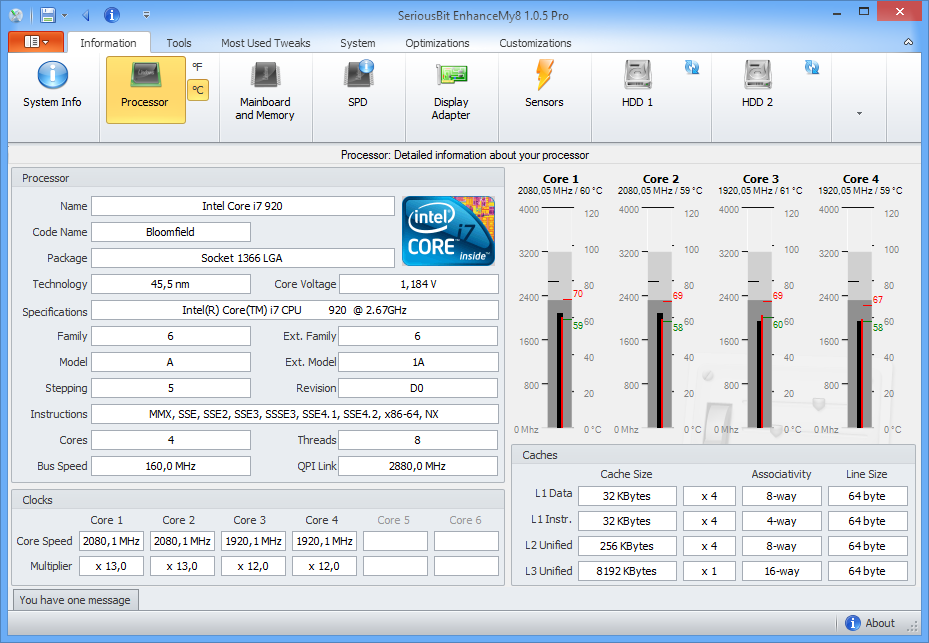EnhanceMy8, Windows 8 əməliyyat sisteminizi aşağıda sıralanan baxımları etmənizi təmin edəcək vasitələri ehtiva edər: